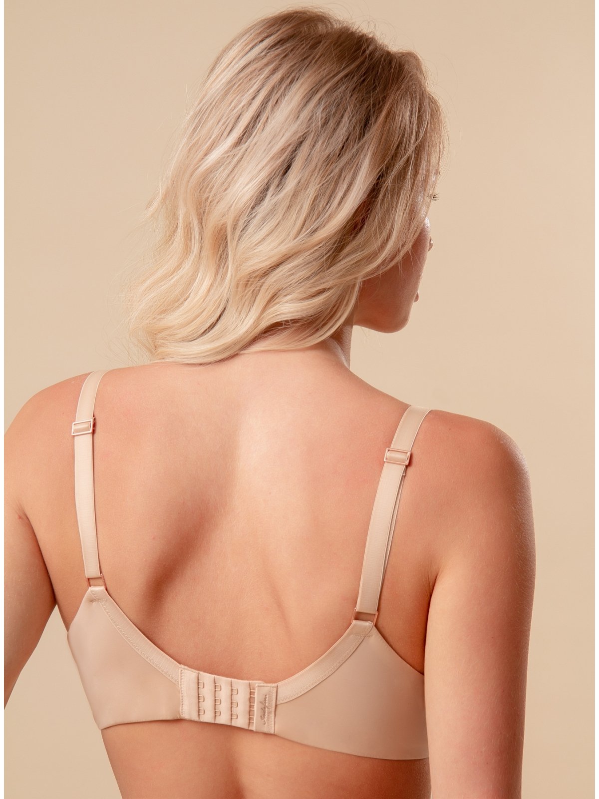 Бюстгальтер-топ от торговой марки Индефини. Бежевый бюстгальтер на косточках выполнен из эластичного материала с высококачественной обработкой краев, дополнен мягкими формованными чашками без Push-up, на регулируемых бретелях, объем под грудью регулируется застежкой на крючках.